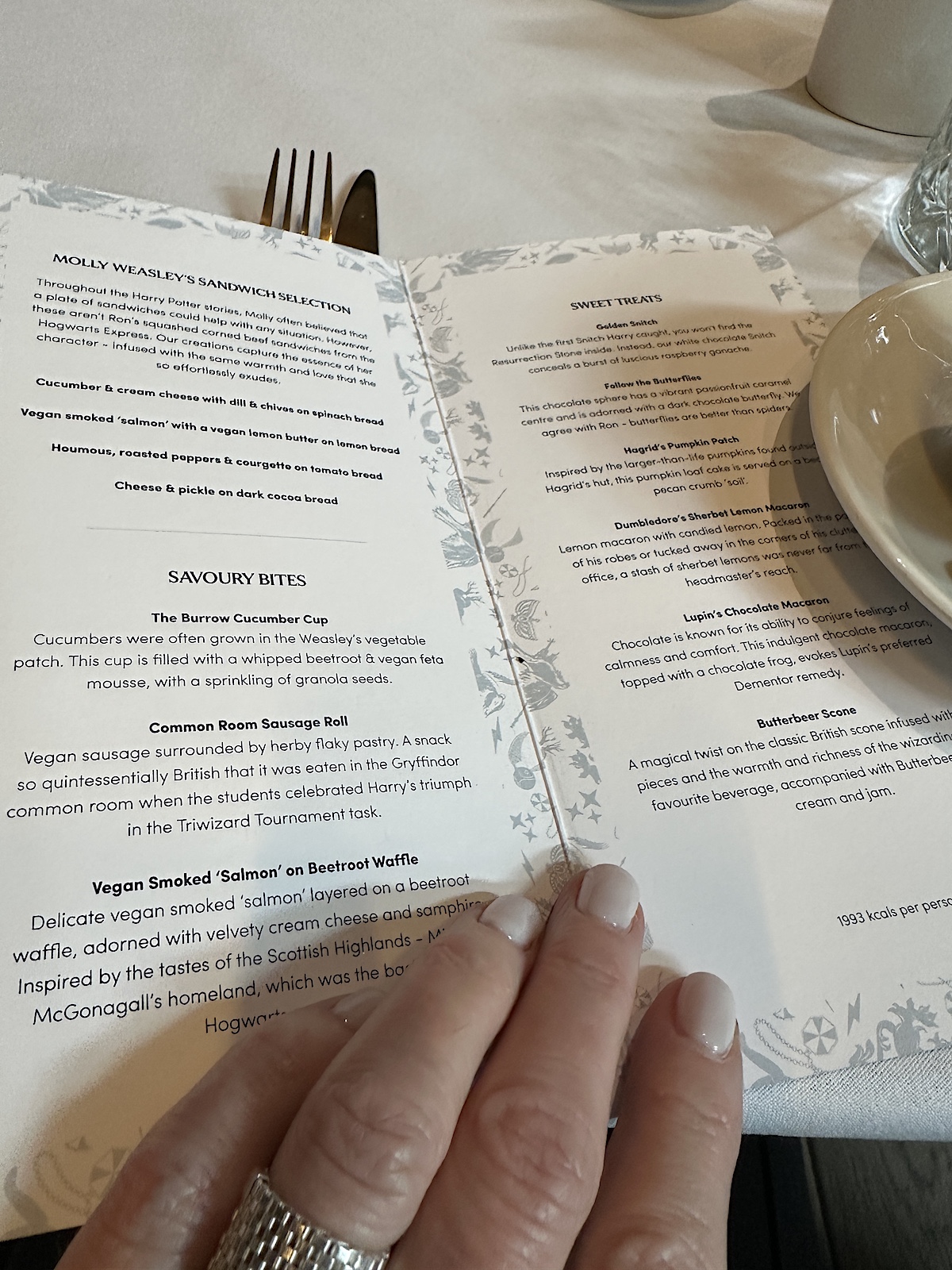 Wir starteten mit einem High Tea à la Harry Potter. Alle Gerichte hatten Namen, die man mit den Büchern und Filmen in Verbindung brachte und es gab sogar einen goldenen Schnatz.