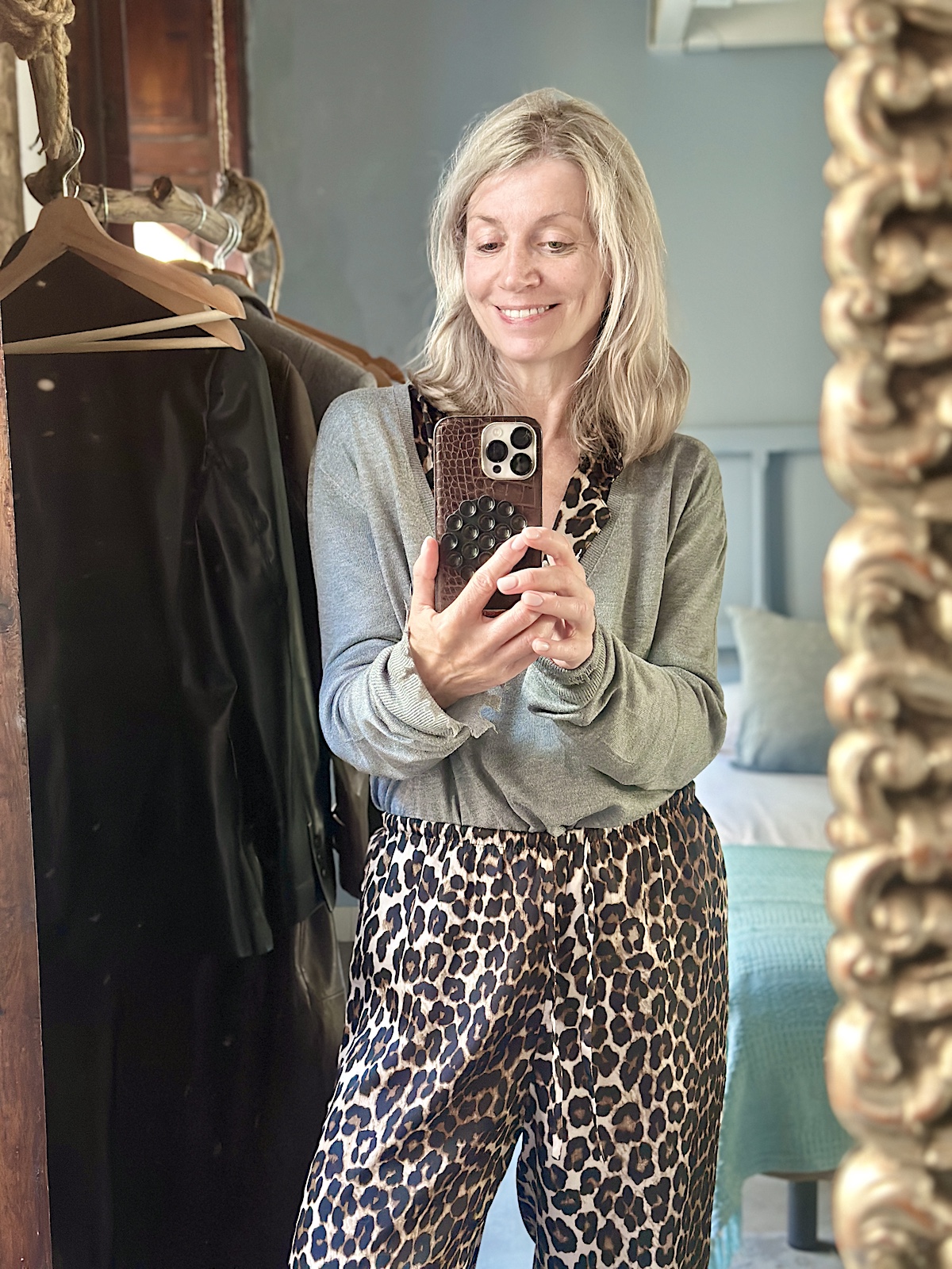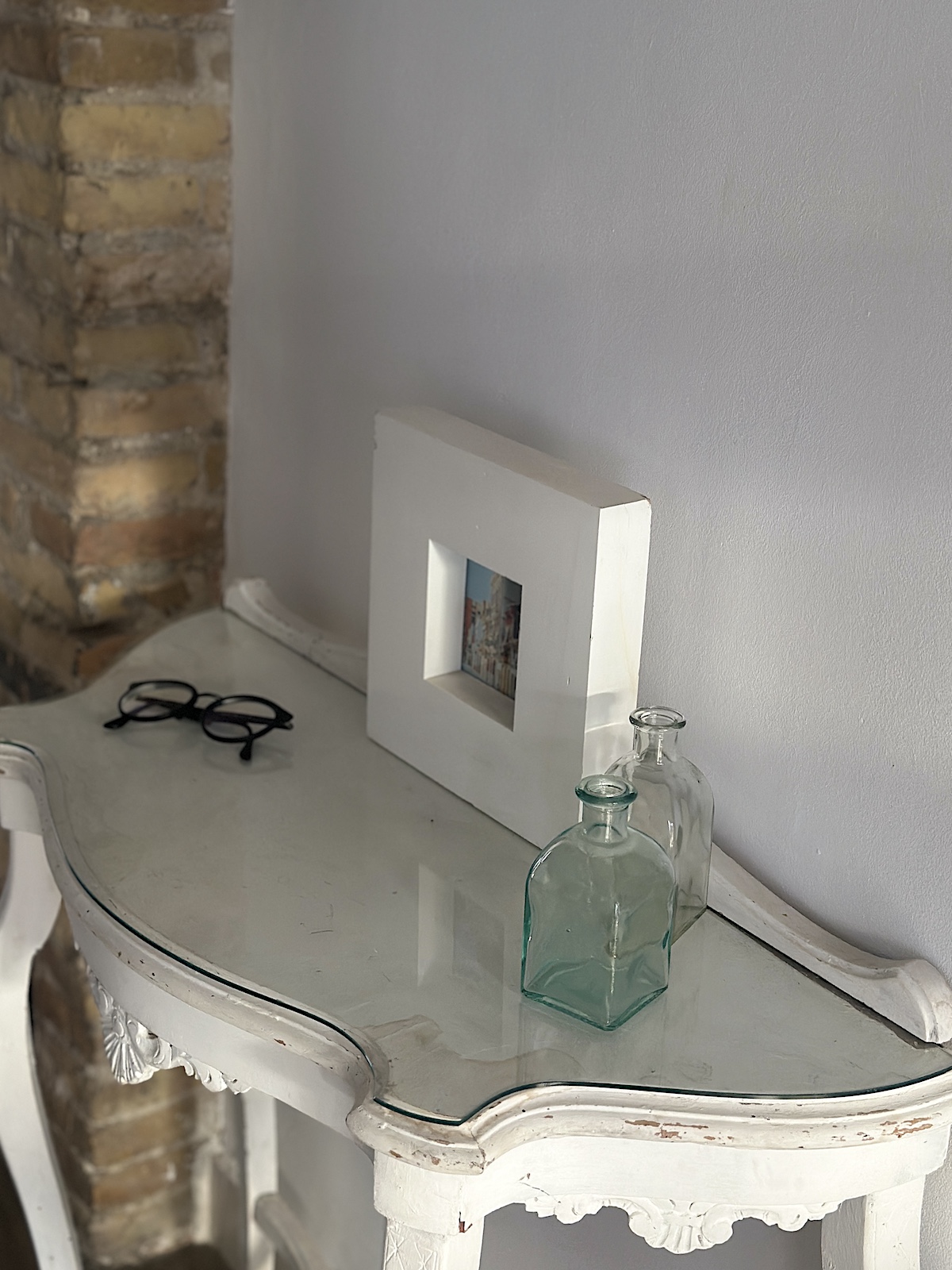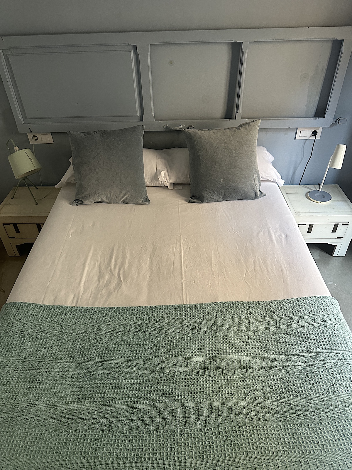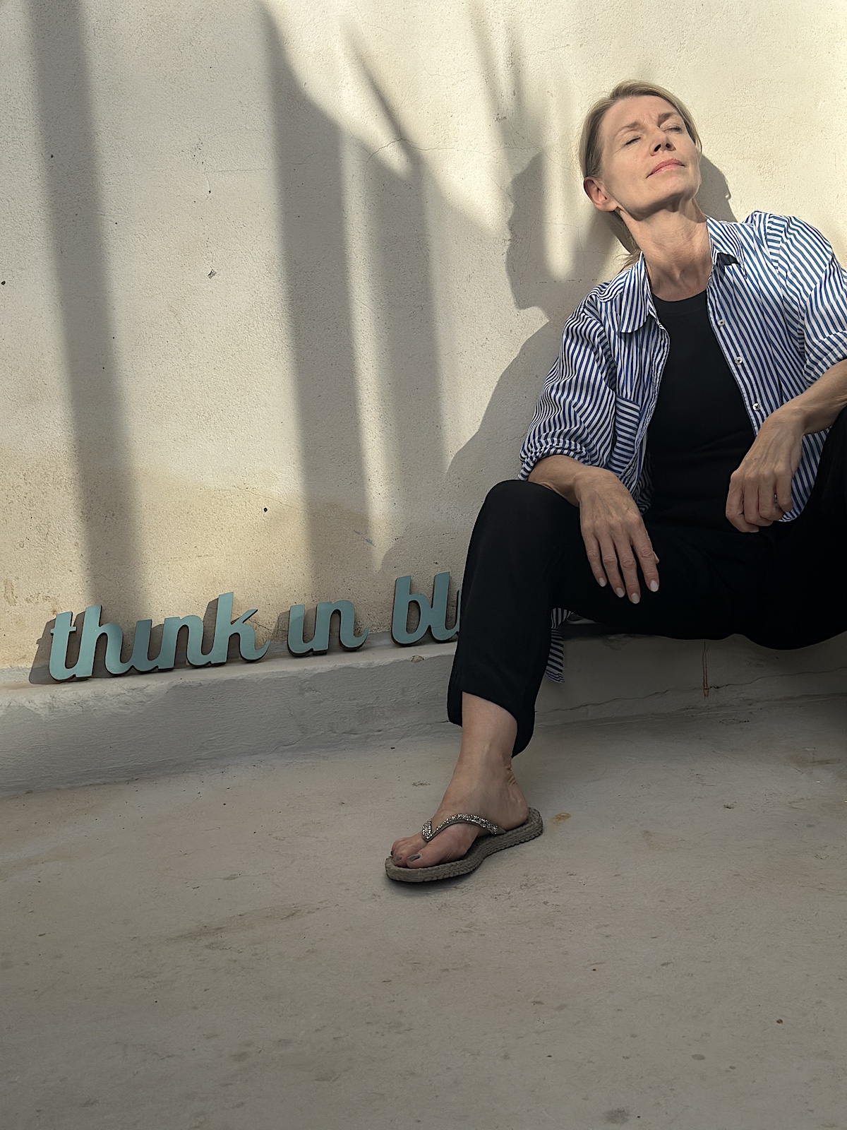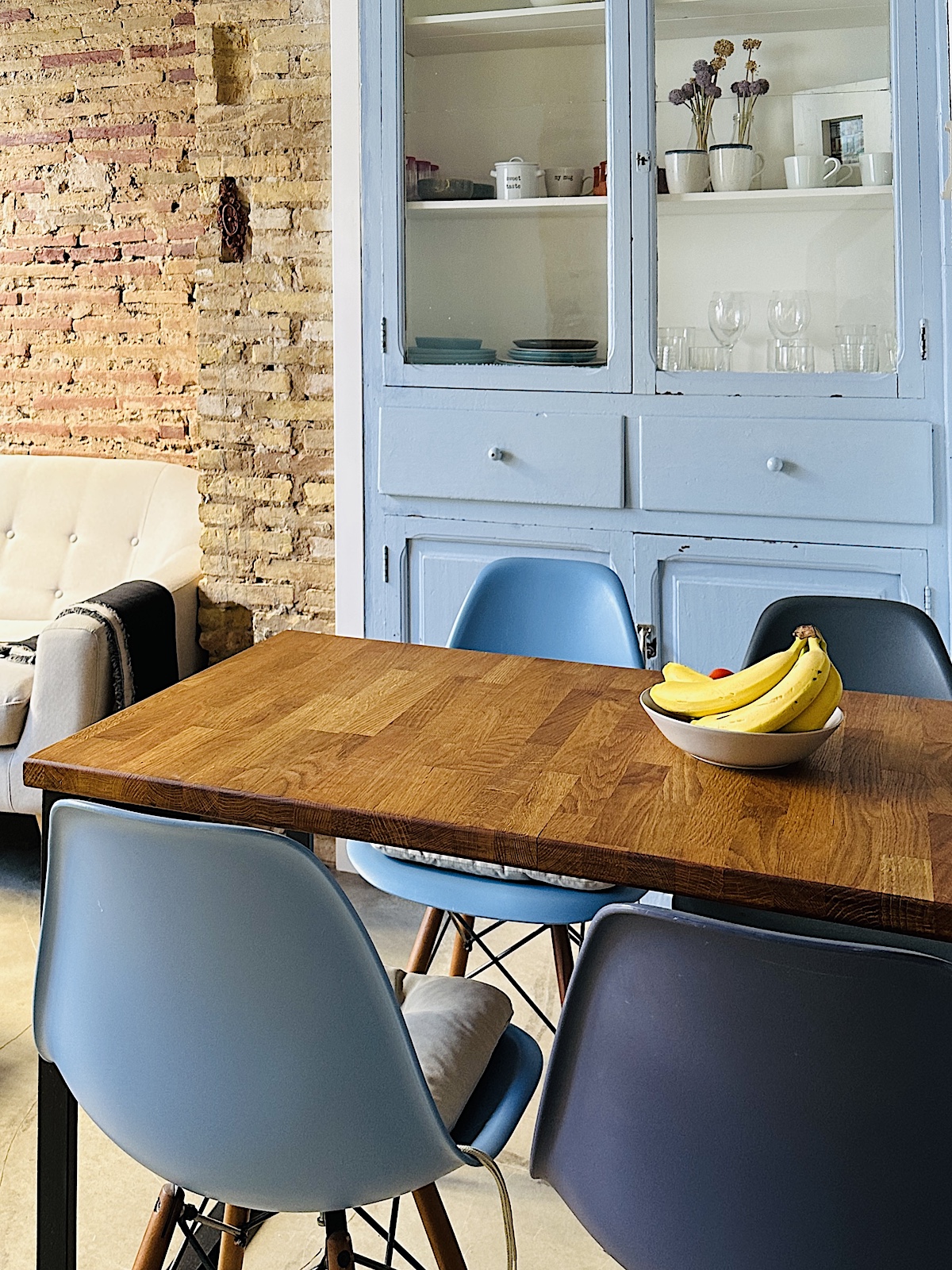 In der Wohnung herrscht blau vor, aber nicht aufdringlich, sondern dezent und geschickt eingesetzt, um Akzente zu setzen. Die Wohnung ist genau mein Stil. Liebevoll und modern renoviert, abgeschlagene Wände, die Möblierung nicht von der Stange, mit unterschiedlichen Lichtquellen gearbeitet, gegossener Fußboden, Balkon, zweites Schlafzimmer und, und, und…