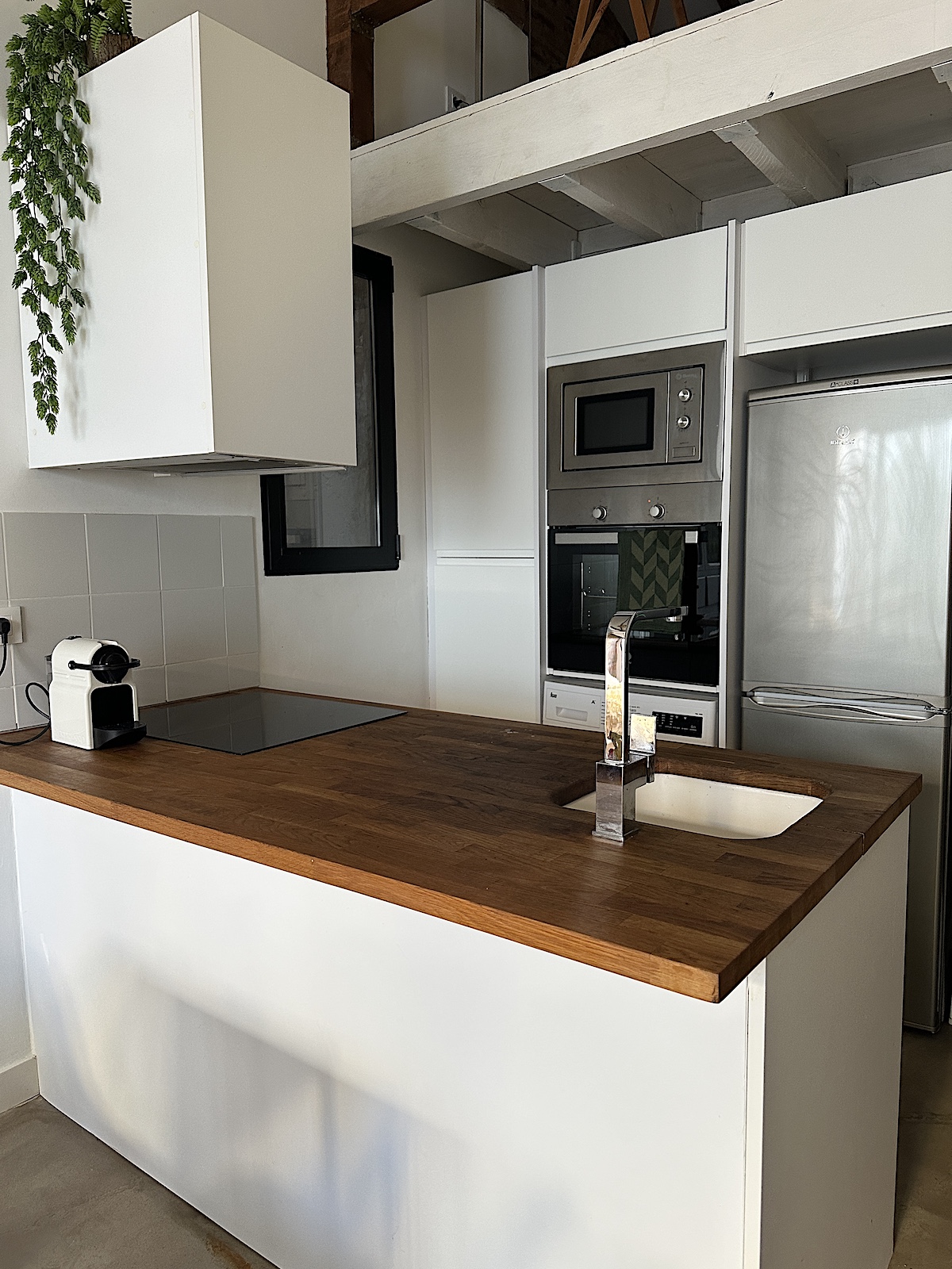Meine auch, aber nicht ganz so sehr, denn sie ist oben, also unterm Dach, da die Häuser hier meist nur zweistöckig sind. Die Besitzer haben den Dachboden geschickt genutzt und quasi eine weitere Etage, ein offenes Schlafzimmer, integriert. Die Fensterseite ist mit einer kompletten bodentiefen, neuen Glasfront ausgestattet, d.h. es kommt viel Licht in die Wohnung und das Fenster ist isoliert.